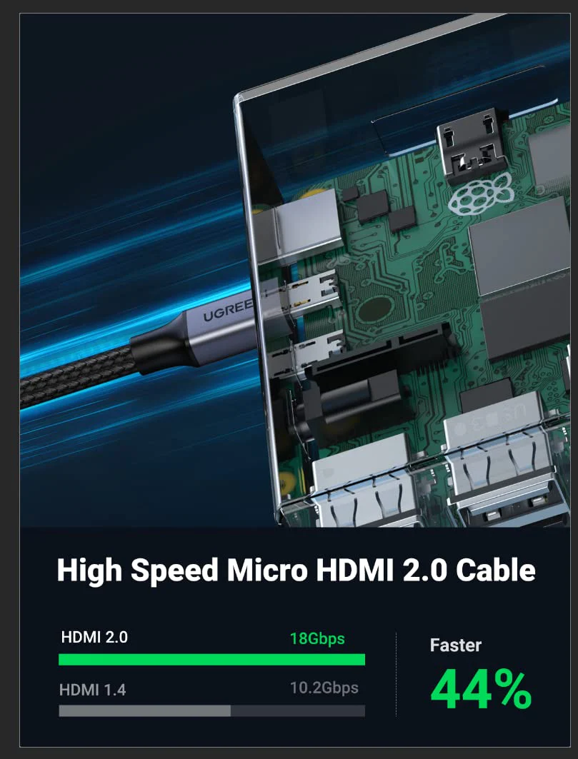 UGREEN 4K 60Hz Micro HDMI 2.0 to HDMI Cable—
